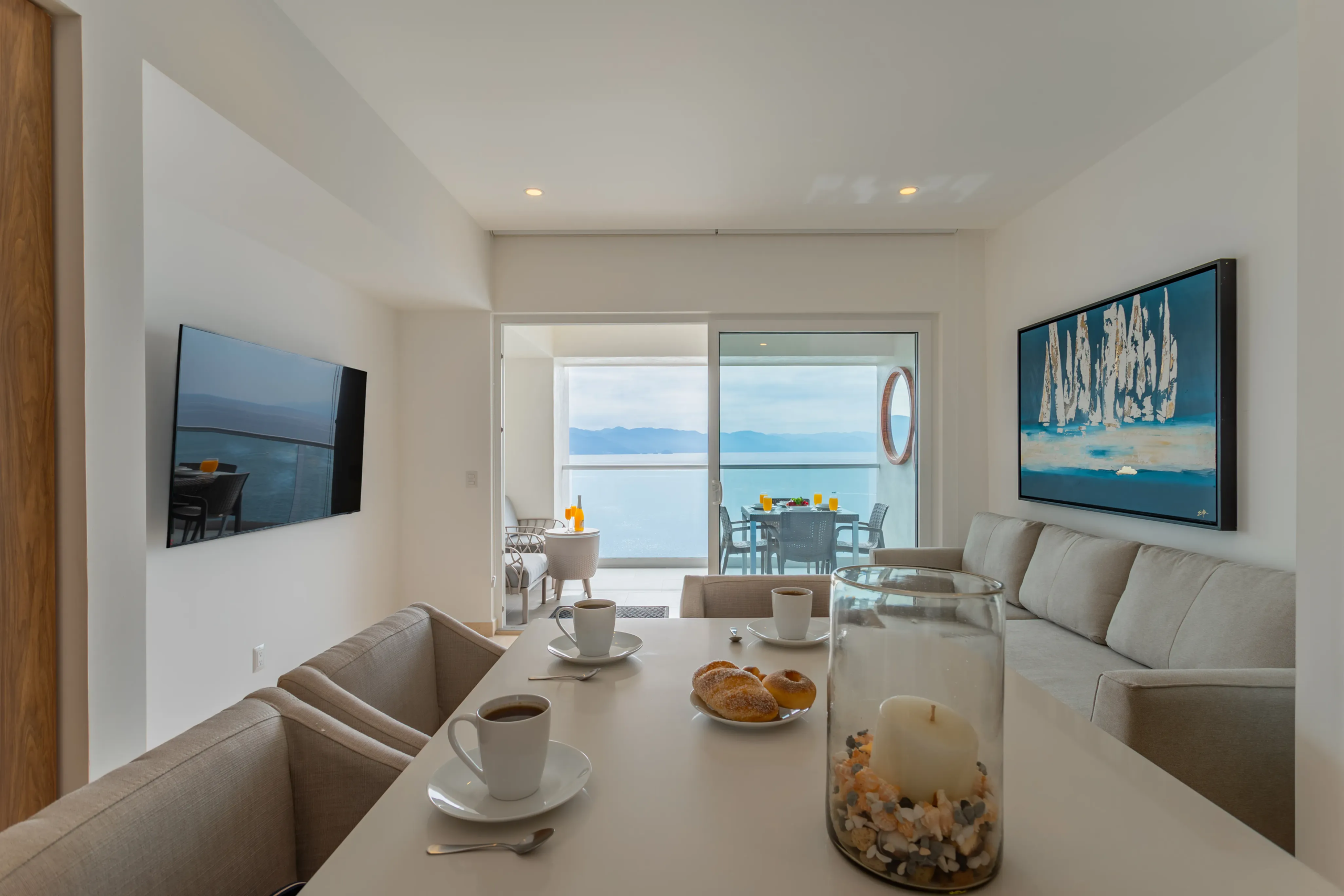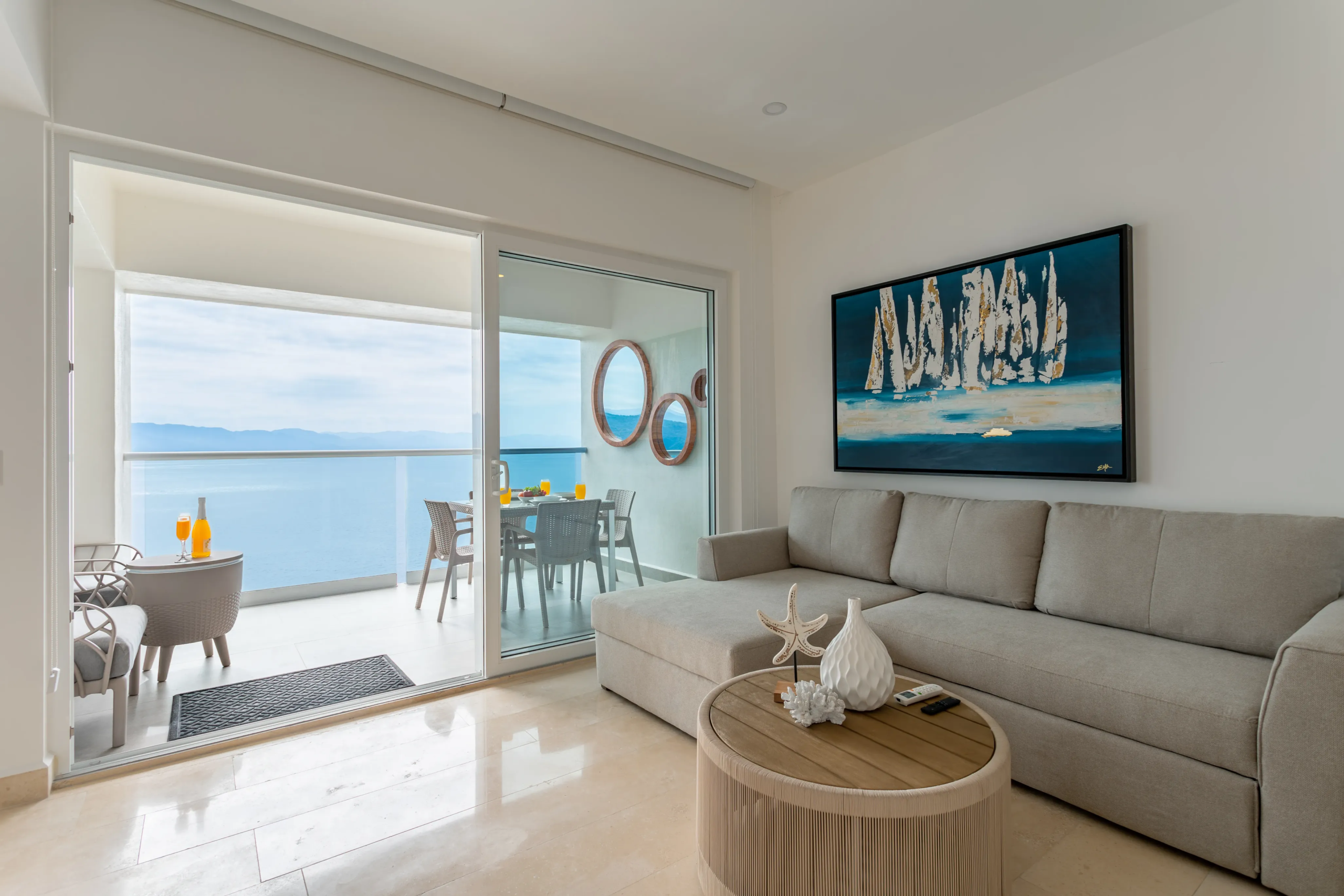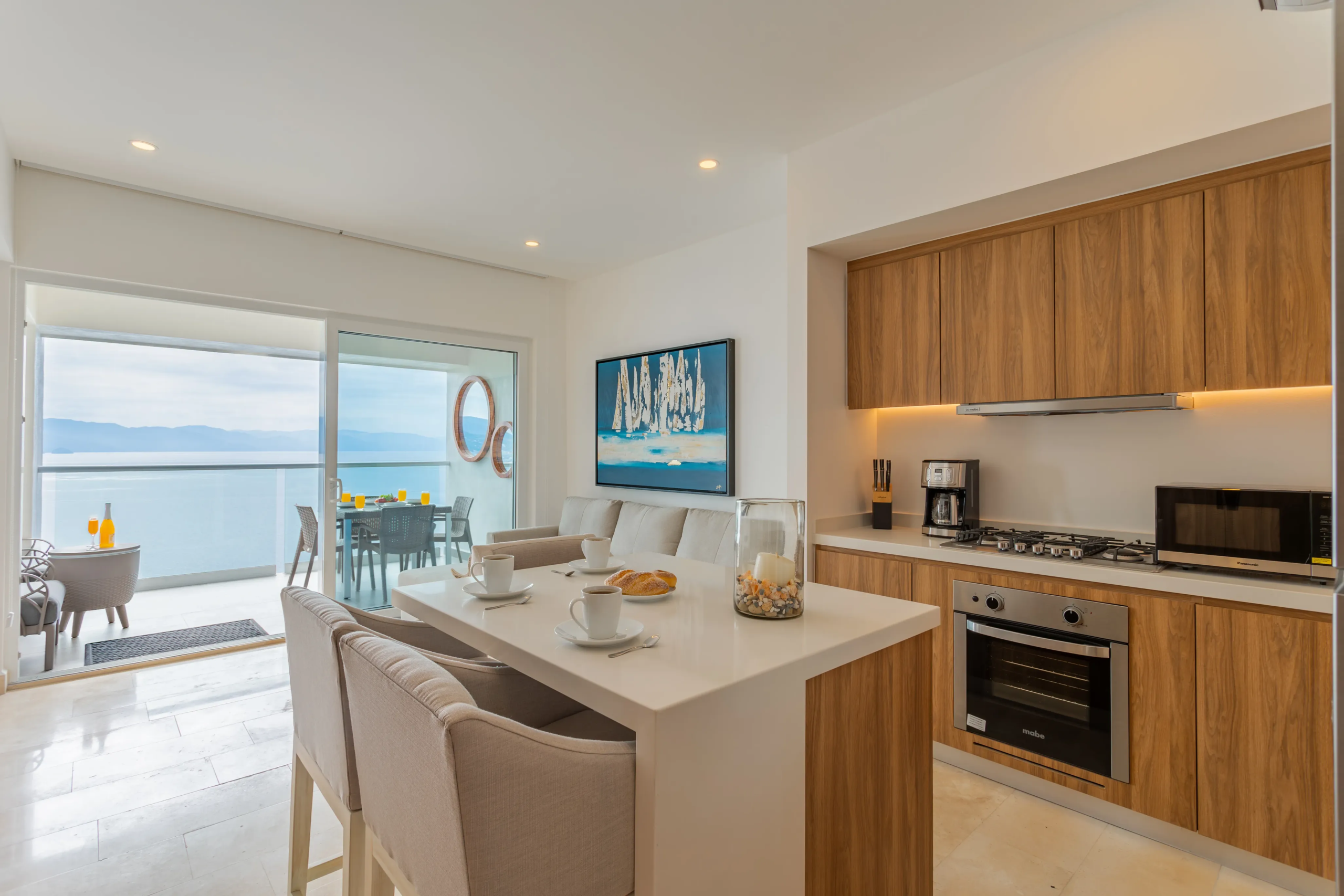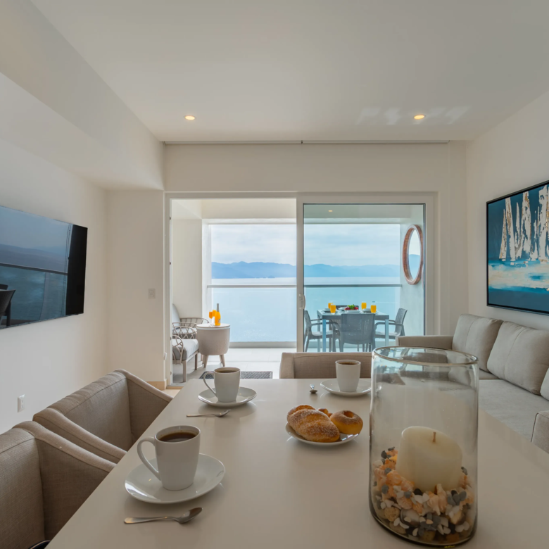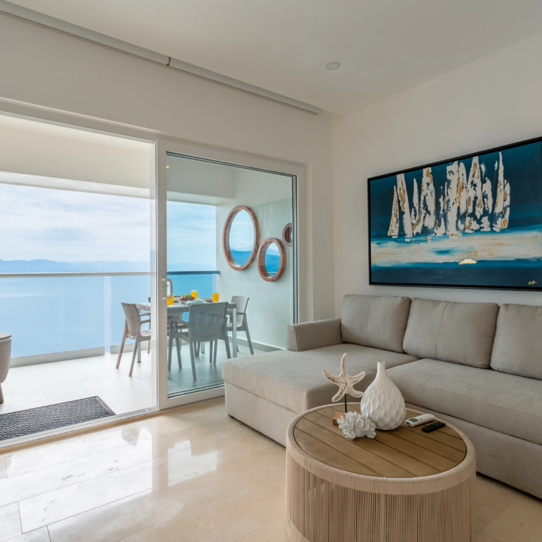 Unidad 2102 en Harbor Torre Norte, Puerto Vallarta: Departamento de una recámara totalmente nuevo con muebles modernos y bodega adicional adquirida aparte. Incluye mejoras como backsplash elegante y ventiladores de techo. Ideal para rentas, ya que cuenta con un sofá cama. Impresionantes vistas al océano y amenidades de lujo.